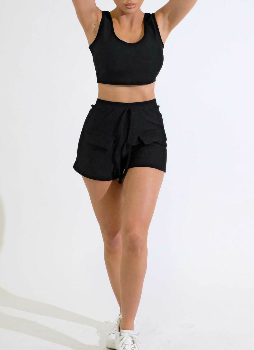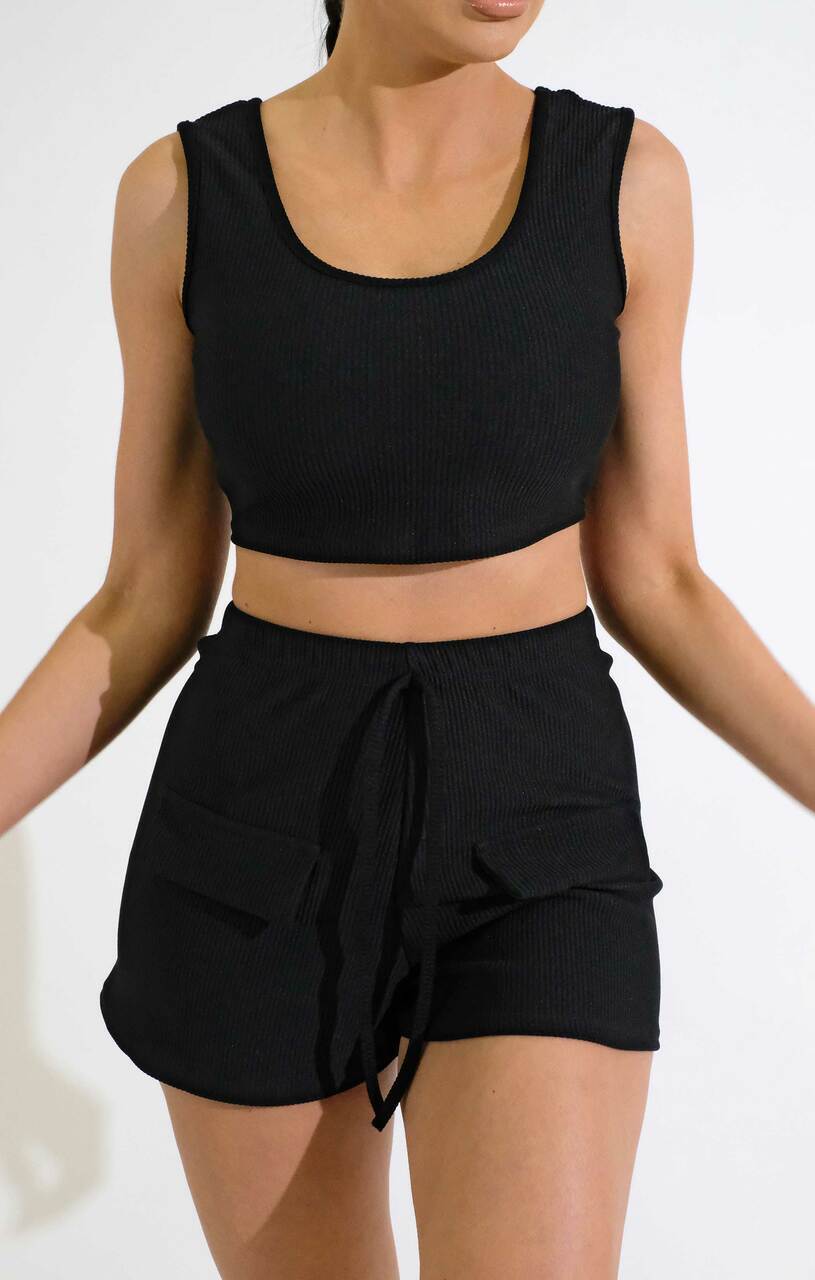 Black Scoop Neck Sleeveless rib Crop Top